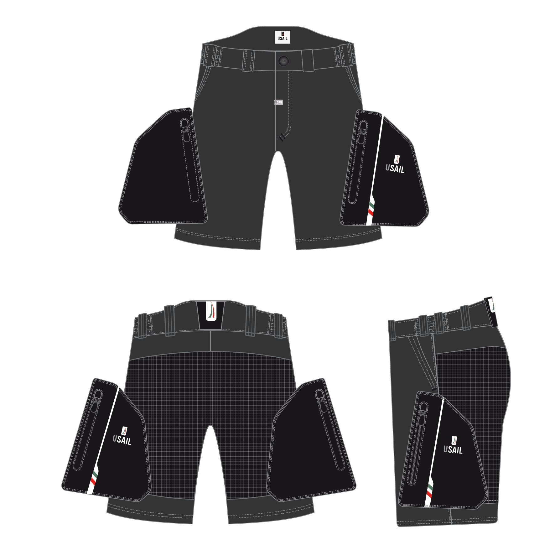 Pantalone cargo corto tecnico, con rinforzi in tessuto antiabrasivo, con elastici laterali e passanti in vita, chiusura con zip e bottone e a baionetta, con due tasche anteriori e due tasconi laterali con zip. Tessuto base: elasticizzato in fibra poliammidica trattato con un finissaggio idrorepellente che non permette al tessuto di bagnarsi ma al tempo stesso garantisce un'ottima traspirazione con conseguente sensazione di comfort. Composizione: 96% PA - 4% EA Peso: 115 gr/mq. Tessuto di rinforzo sulla parte posteriore e tasconi laterali: in fibra di poliestere dotato di un'ottima resistenza meccanica alla trazione, alla lacerazione e all'abrasione.